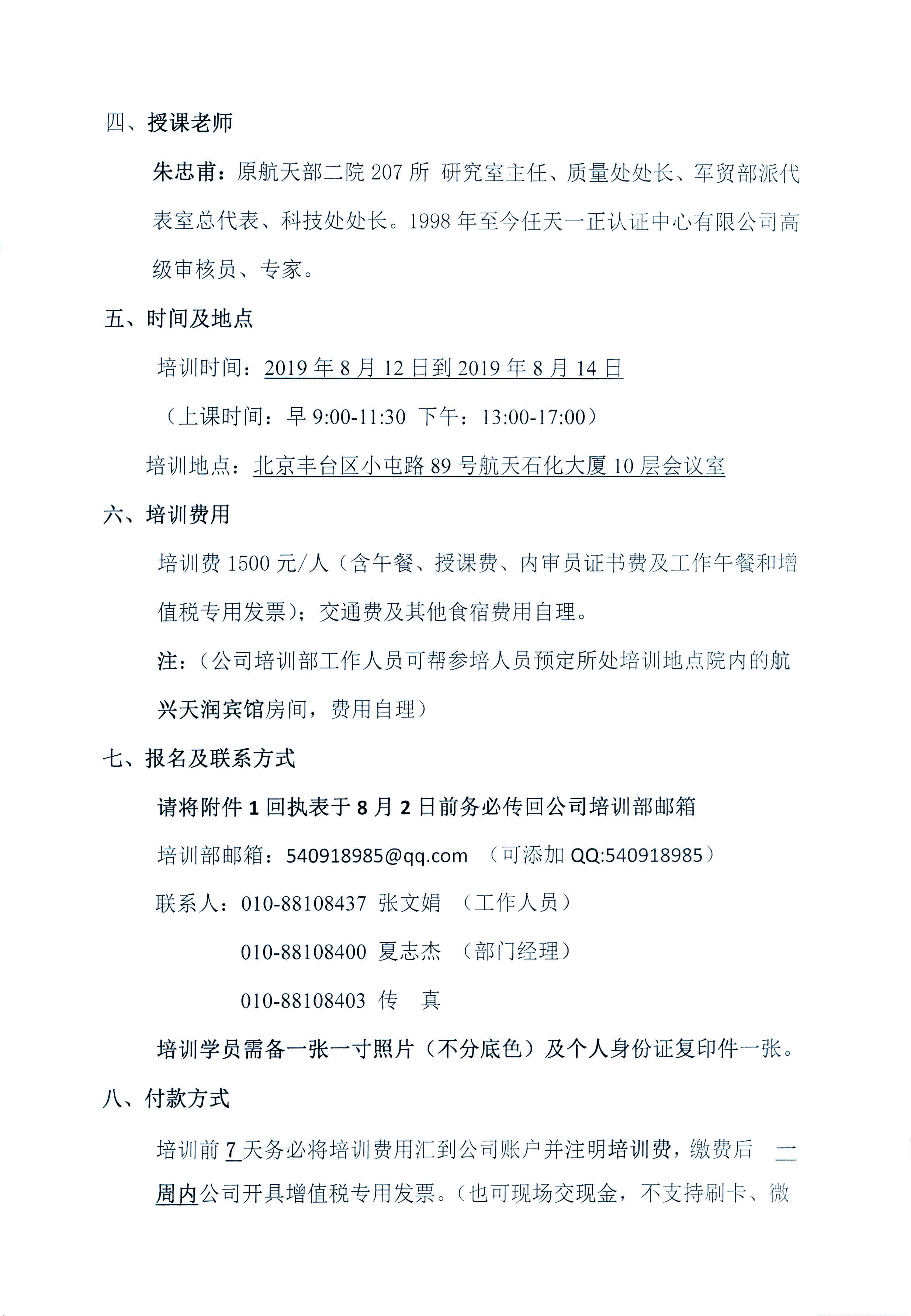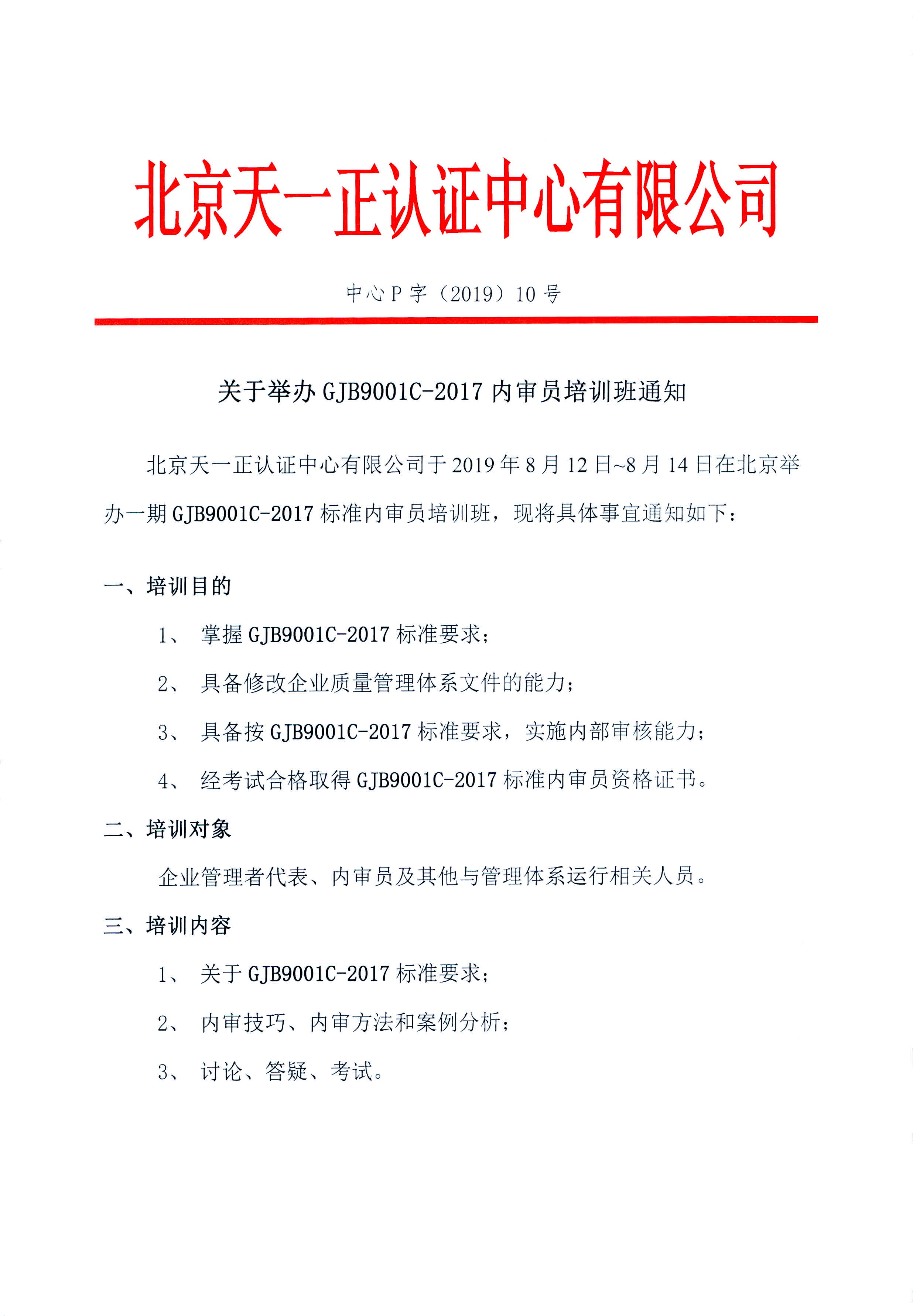 關于舉辦GJB9001C-2017內審員培訓班通知發(fā)表時間:2019年07月26日