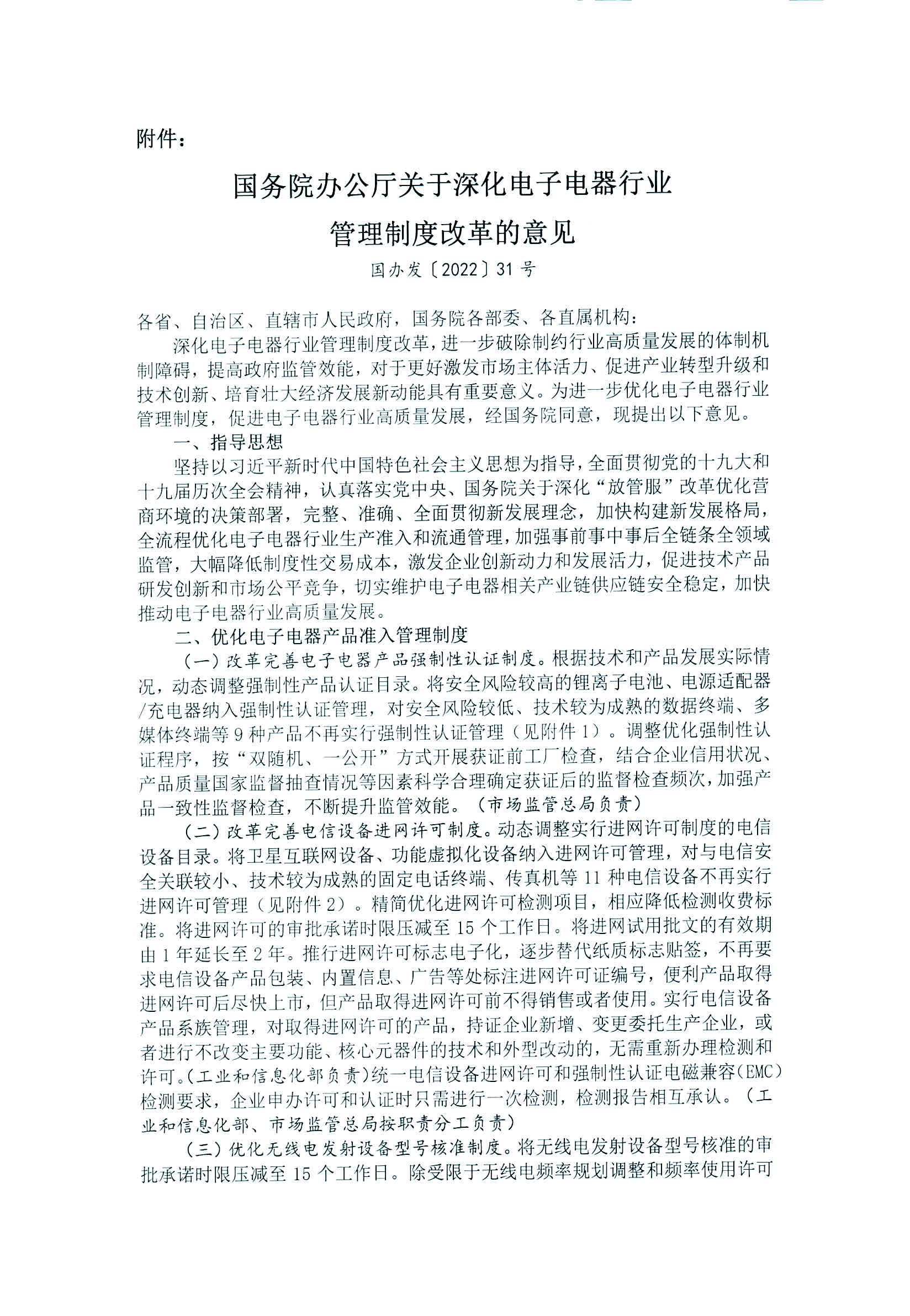 中心Z字(2022)38號(hào)關(guān)于轉(zhuǎn)發(fā)《國(guó)務(wù)院辦公廳關(guān)于深化電子電器行業(yè)管理制度改革的意見(jiàn)》的通知發(fā)表時(shí)間:2022年10月11日