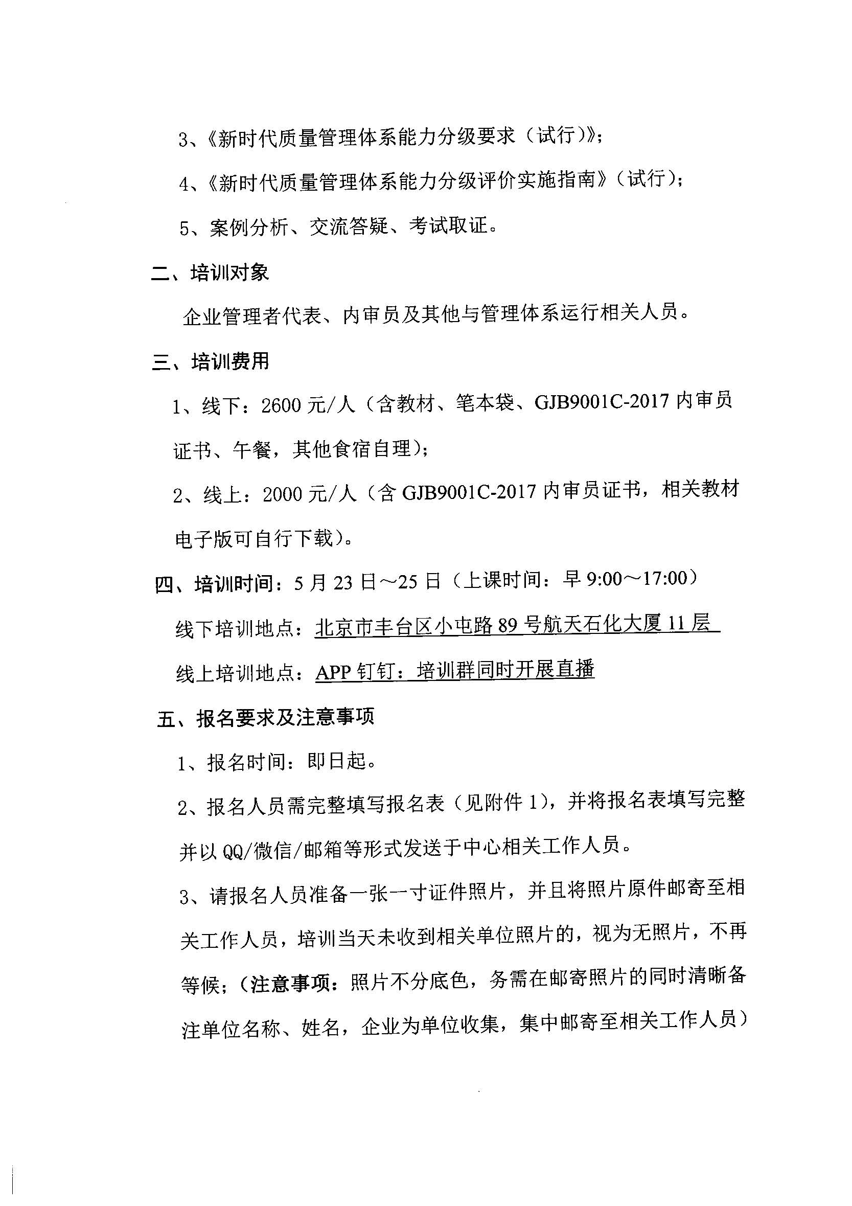 關(guān)于舉辦GJB9001C-2017內(nèi)審員和新時(shí)代質(zhì)量管理體系培訓(xùn)通知發(fā)表時(shí)間:2023年05月10日