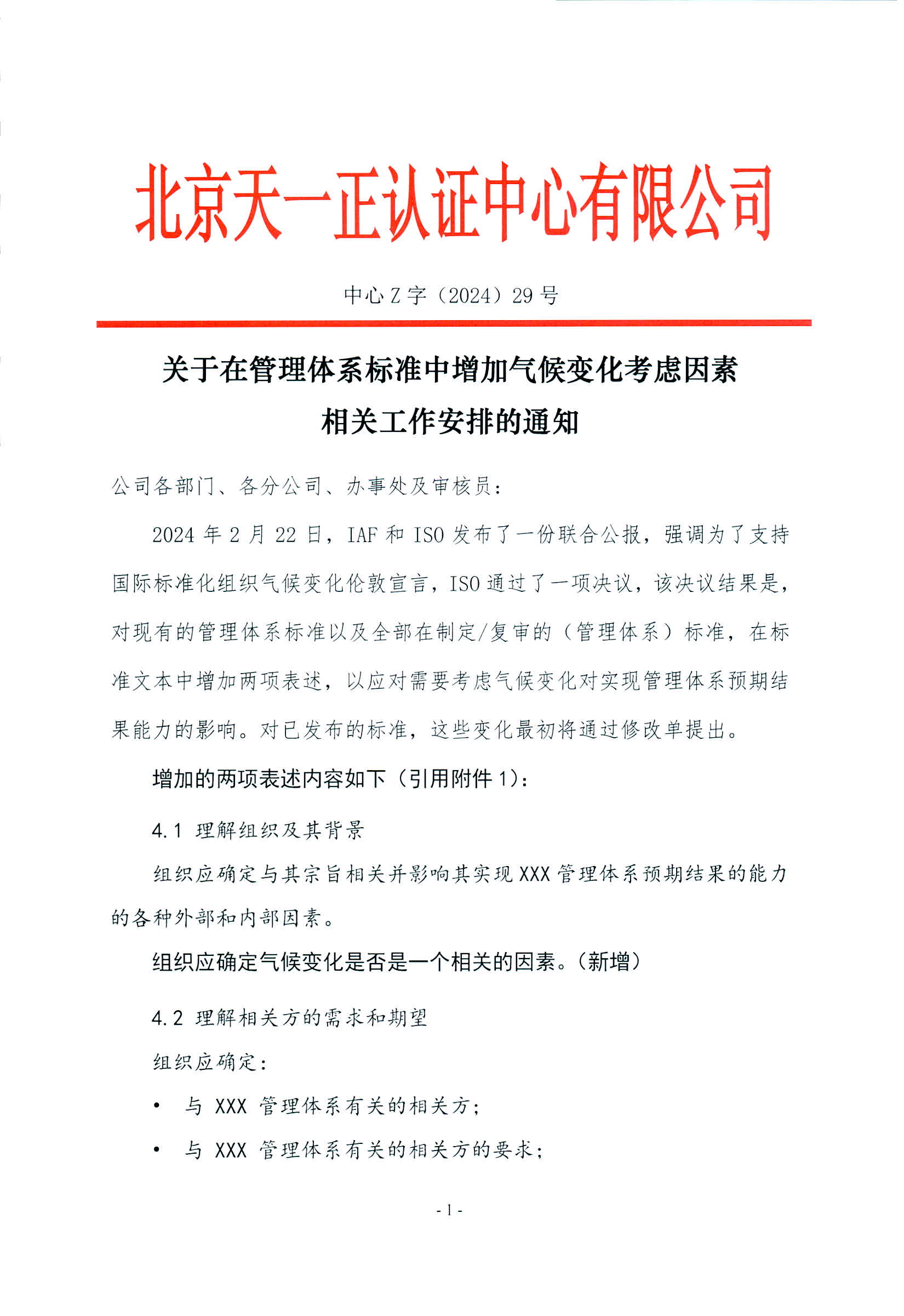 管理體系標(biāo)準(zhǔn)中增加氣候變化考慮因素相關(guān)工作安排的通知發(fā)表時(shí)間:2024年05月29日